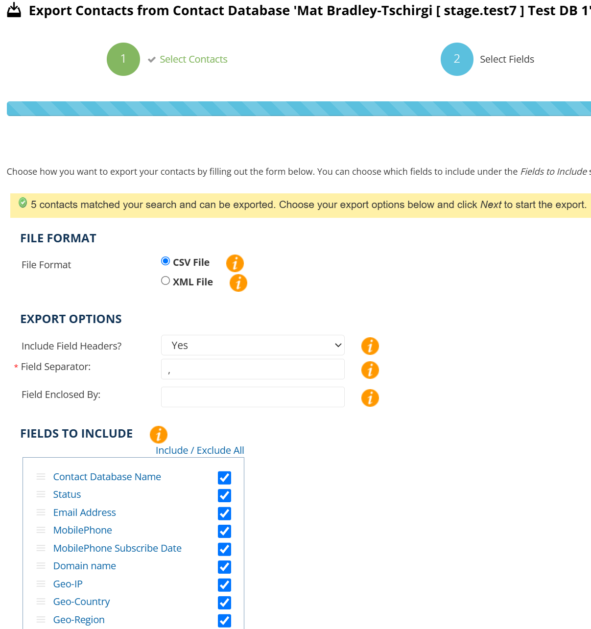 database(s) you would like to export the Unsubscribes from and click "Next" (Fig 10).